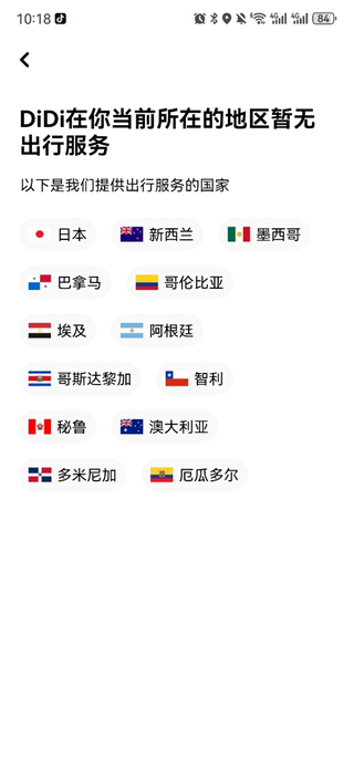 滴滴国际版部分地区开启滴滴专车、滴滴摩托、滴滴外卖,用户可以查看你所在地区是否开启!