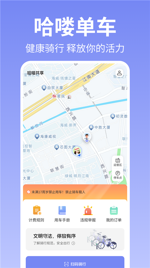 哈喽共享单车为用户提供详细的用车手册,帮助用户了解正确的运营区、停车区说明、违约骑行行为说明等。此外,用户还可以通过应用举报违规停车、损坏车辆等行为,共同维护良好的出行环境。