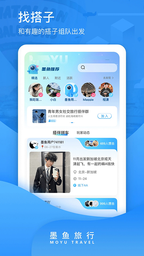 1、墨鱼旅行用户可以发布自由行邀约,也可以拼团出游