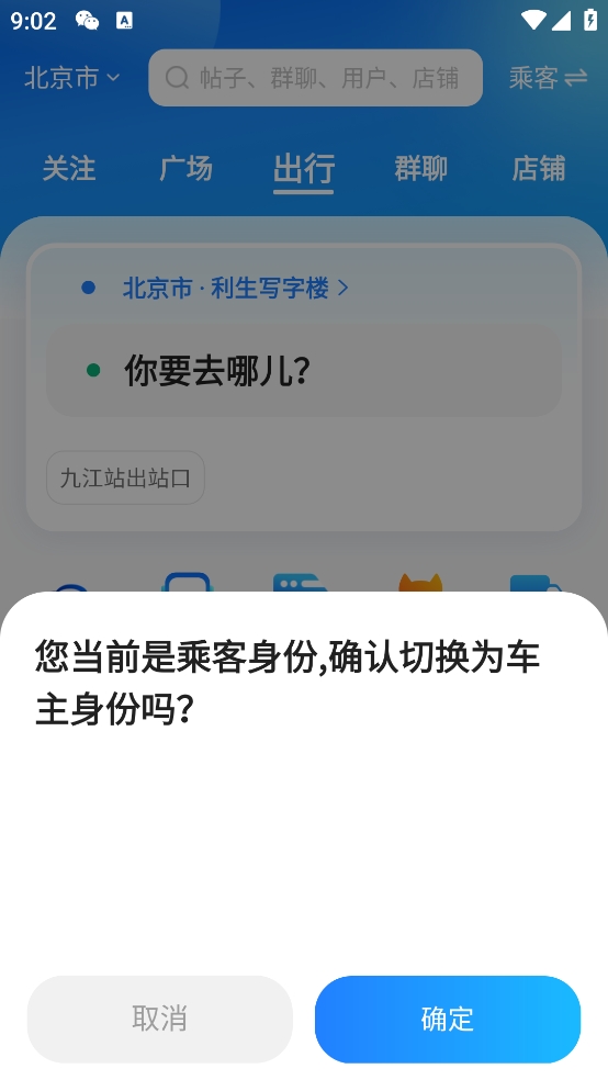 1、打开顺风车App,选择乘客或者车主身份。