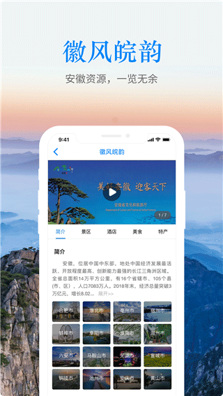 4、众多景区优惠门票线上专享,享受更多购票优惠,安徽概览轻松查阅,了解详细的安徽历史文化