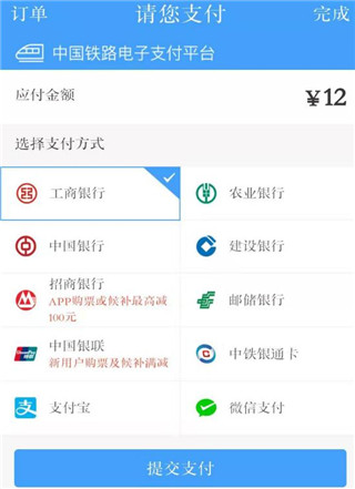 4、核对乘车信息无误后,点击立即支付,目前12306支持以下支付方式。付清票款后即可。