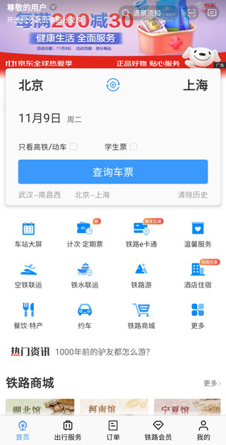 6、【其他功能】购高铁,动车票,同时支持12306网站和铁路12306购票