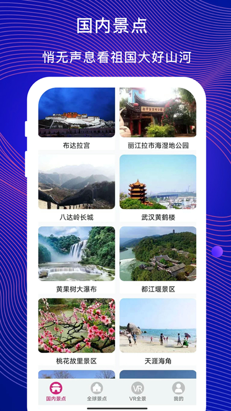 vr云旅游app是一款可以线上查看景点的vr手机软件,采用vr的形式带领用户沉浸式参观各大景区,进行线上实景预览,还有全景vr模式,扩大用户的视野范围,从高空的视角365度无死角欣赏风景。vr云旅游app采用了建模渲染技术,将已损坏的文物和文物遗址等通过建模的方式复原,给用户带来极好了参观体验,用户在欣赏景点的同时还可以开启语音,一遍参观一遍听讲解,让用户足不出户就可以云游世界美景。喜欢的小伙伴快到本站下载吧!