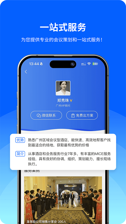 1、提供50个热门城市的数百位会议顾问,免费获取活动方案。