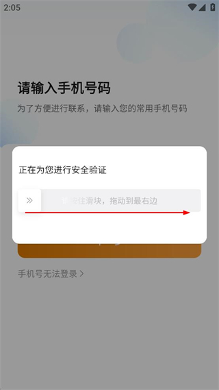 2、完成手机号码填写与协议勾选后,点击下一步按钮,页面弹出安全验证窗口,按住滑块拖动到最右边。