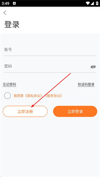 3、在登录页面,点击立即注册选项,进入注册页面。