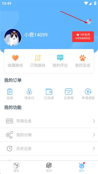 1、打开小鹿导游,点击页面底部的我的选项,进入个人中心页面,找到设置图标。