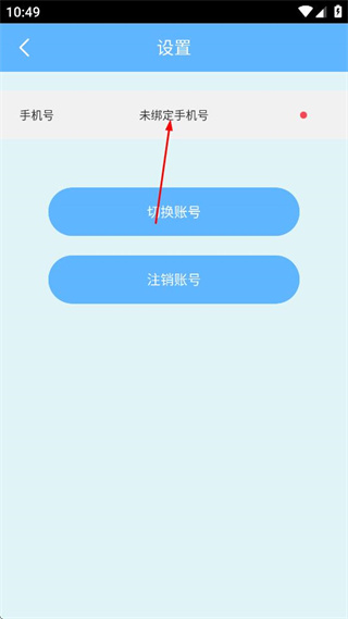 2、点击设置图标进入设置页面,找到未绑定手机号选项,点击该选项进入绑定页面。