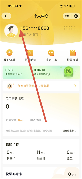 1、在松果出行首页,点击左上角头像区域,进入个人中心界面。