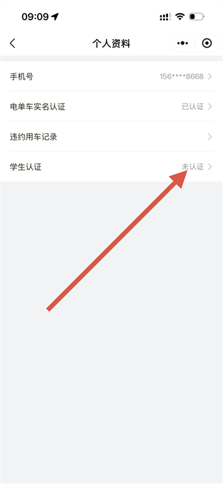 3、在个人资料页面,点击学生认证选项,进入认证界面。