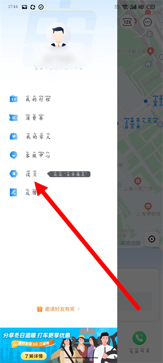 1、打开申程出行,点击左上角的个人图标展开侧边栏。