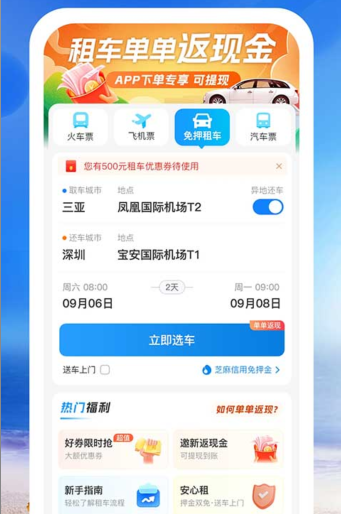 3、【优惠福利】平台推出新人礼包与多种优惠活动,覆盖火车票、机票及租车服务,让整体出行成本更加经济实惠。