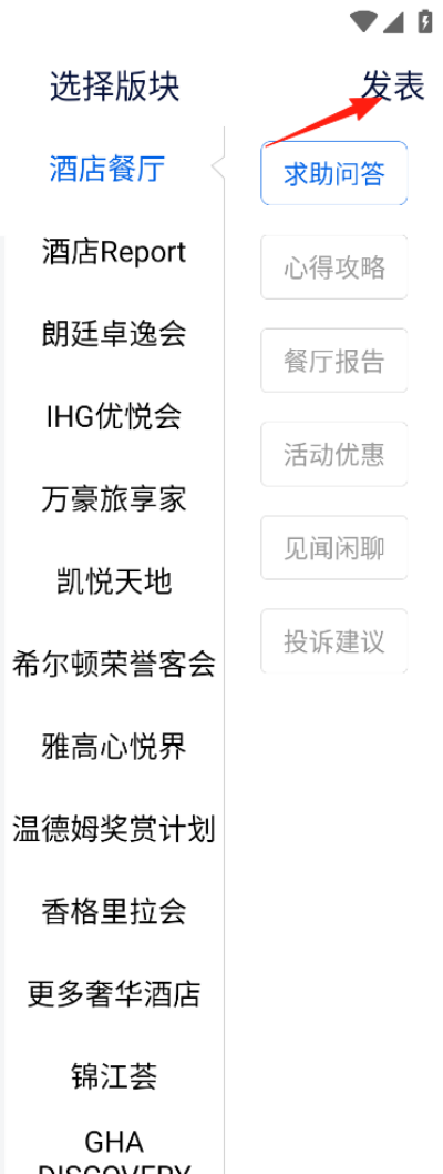 4、选择合适的发布板块后,点击右上角“发表”即可完成投票发布。