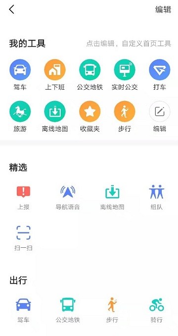 从首页来看,高德的画面更简洁易懂,搜索框在下面,子菜单有驾车、公交地铁、打车等多个选项,把搜索栏往上拉,点击工具箱后长按图标,还可以照你喜欢的顺序调整。