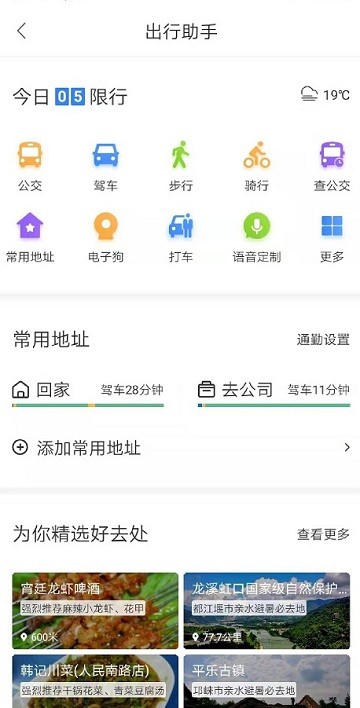 百度的界面更详细人性化,搜索框在上面,想要打车或获取公交路线,要么在搜索框输入目的地后切换,要么点击出行助手,总之是要比高德地图麻烦一个步骤。