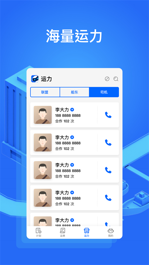 推送联盟运力长期计划,指定司机派单,分享货源二维码,满足多种业务场景需要。