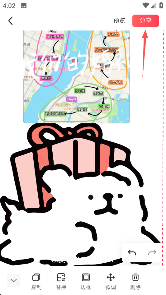 13、电子请柬这样就完成了,随后还可以点击屏幕中间部分,一键分享至微信或QQ了。