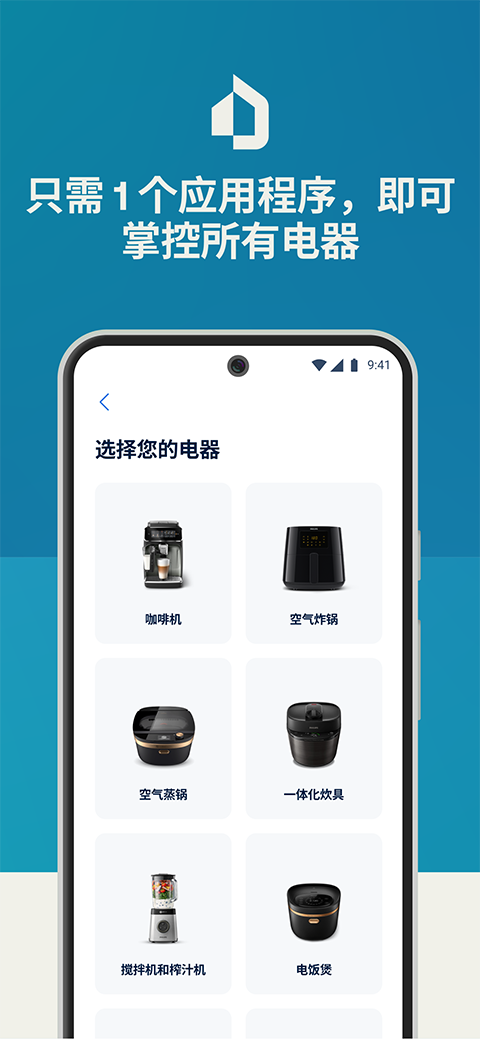 2、然后进入厨房电器页面,选择电器类型,展示自己个性化食谱。