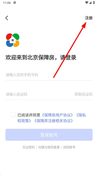 3、在登录界面,点击右上角的注册选项,进入账号注册页面。