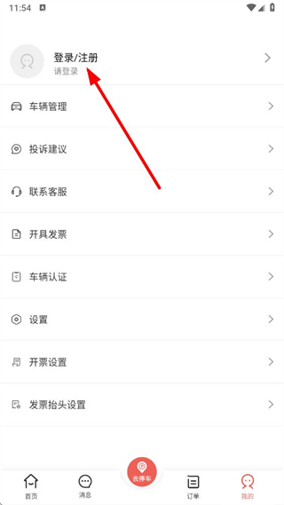2、在我的页面,找到登录注册选项并点击,进入增城泊车的登录操作界面。