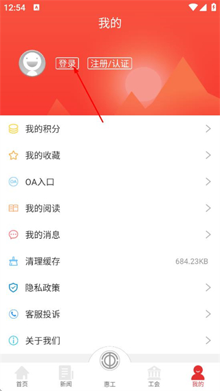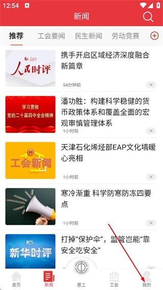 1、在新闻页面,点击底部导航栏的我的,进入个人页面。