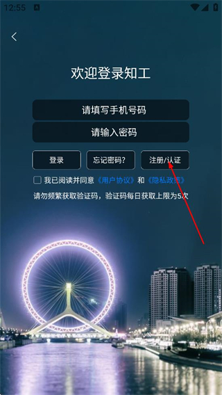 2、在个人页面,点击登录按钮,进入欢迎登录知工页面。