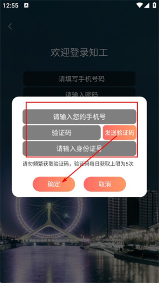 4、填写手机号、验证码、身份证号,点击确定,完成注册信息提交。