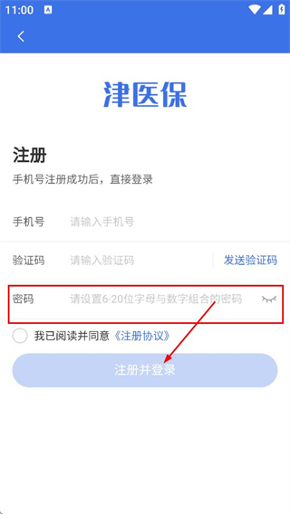 4、在注册页面,填写符合要求的密码,点击注册并登录,完成账号注册与登录。
