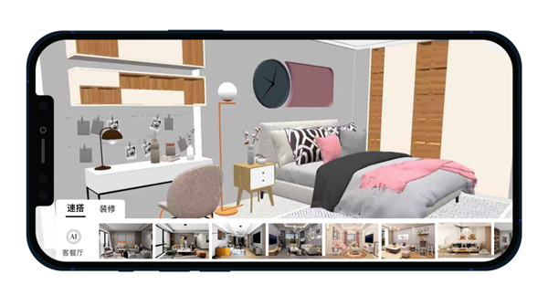 用户使用大库里的精装样板间,快速搭建自己的样板方案,人工智能自动生成三维模拟空间,实现虚拟现实空间设计。