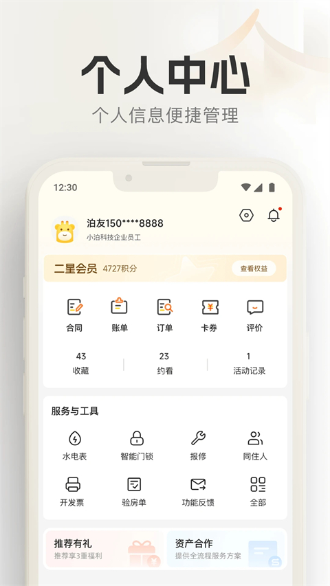 泊寓公寓租房官方版中内置了精选海量优质的房源,每天都会实时为你更新推荐,让你发现更多优质房源,在这里用户通过手机就能随时随地的看房,租房,并且一键快速预约后,就会有专人来带你去看房,让你了解房源真实信息,非常方便实用。此外,租住房子后还支持用户在线缴纳房租和水电费、报修、投诉等一系列功能,帮助你解决找房、住房的所有难题,有需要的小伙伴快来下载体验吧。