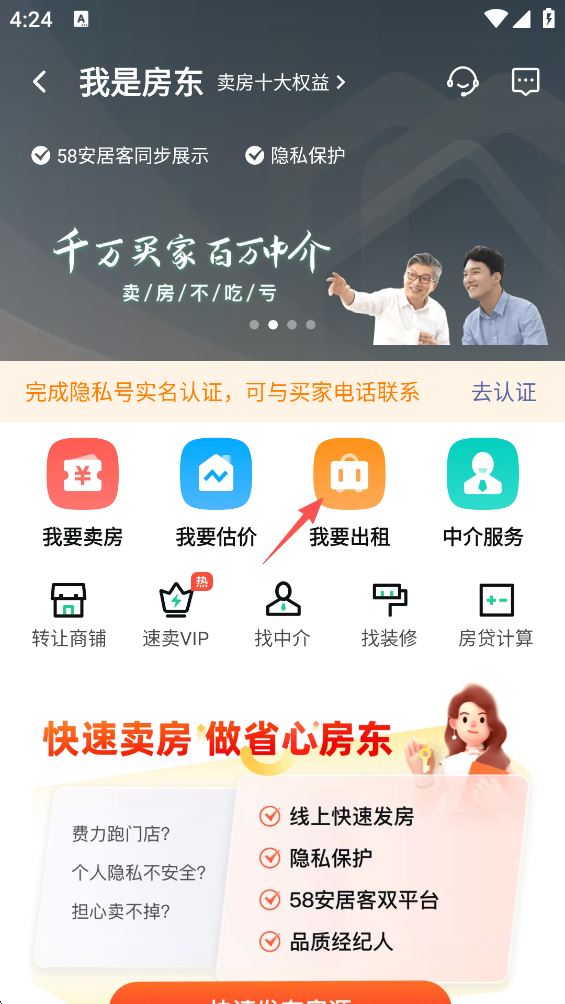 委托卖房、专属房东房源房价展示、房东房源管理;