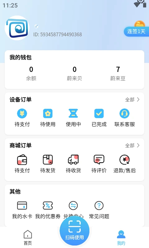 1、一键扫码使用设备,洗衣服、吹头轻松简单;