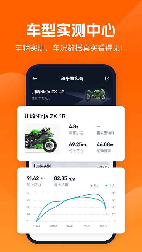专业团队实测摩托车,每款车型的加速、刹车、油耗、马力,真实数据一目了然,帮助您避坑车型。