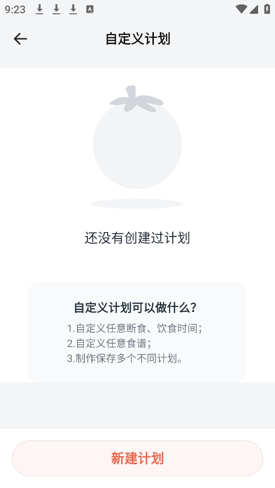2、 在计划列表页面中,点击屏幕右上角的“自定义计划”。