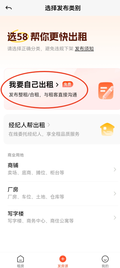 3、选择你的发布出租的类别,我们以第一个为例,发布整租/合租。