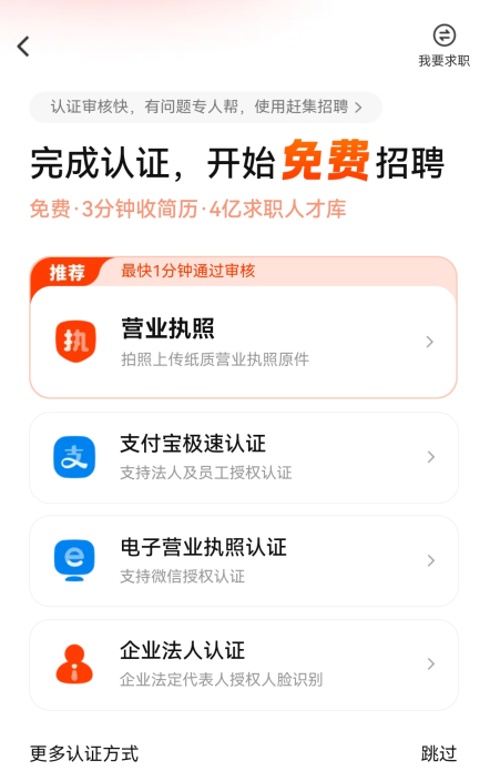 4、选择你的认证方式,有营业执照、支付宝、电子营业执照等方式。