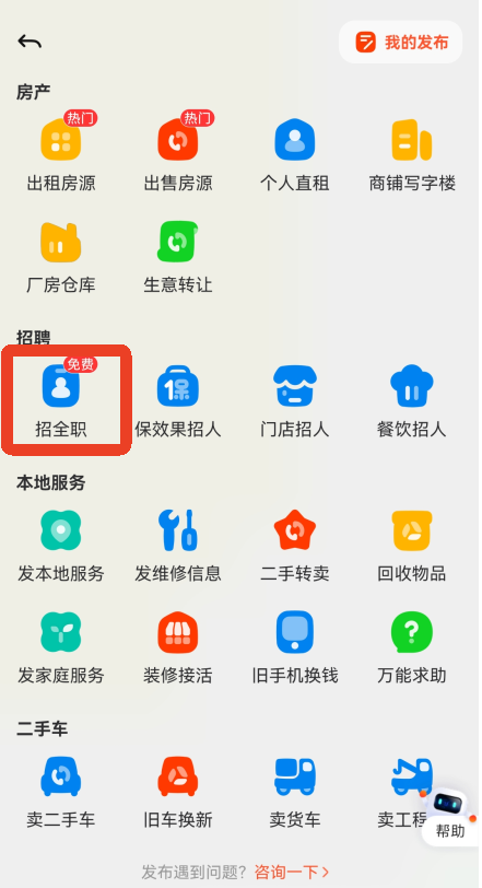 2、选择招聘下方的【招全职】。
