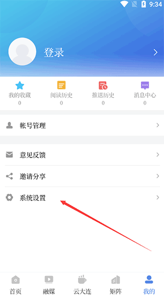 1、首先在本站下载安装好app,然后我们点击进去,之后再点击最又下角的“我的”,然后我们可以看到个“系统设置”,我们点击进去。