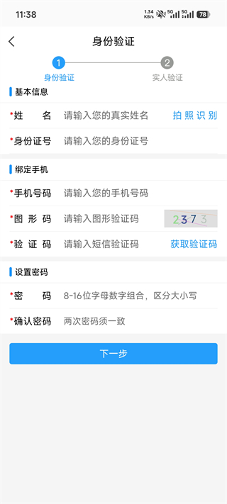 2、未注册用户可点击【注册】,首次使用需完成实名注册,填写相关身份信息,并通过图形验证码、短信验证码及实人认证后,即可成功领取苏证通。