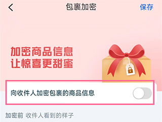 2、进入更多页面,点击包裹加密,将【向收件人加密包裹的商品信息】开关开启即可。