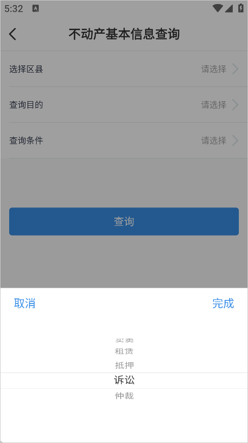 4、选择查询目的(买卖/租赁/抵押/诉讼/仲裁)