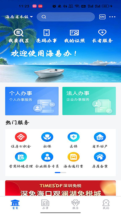 1、打开海易办app,进入之后,在页面里选择法人服务模块;