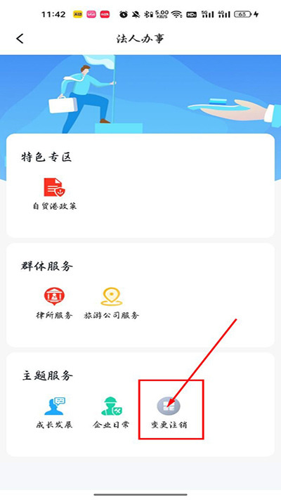 4、进入之后,在企业办事页面里选择点击变更注销;