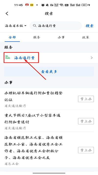 2、直接搜索“海南通行费”;