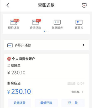 在掌上生活“查账还款”界面,点击“还款”按钮
