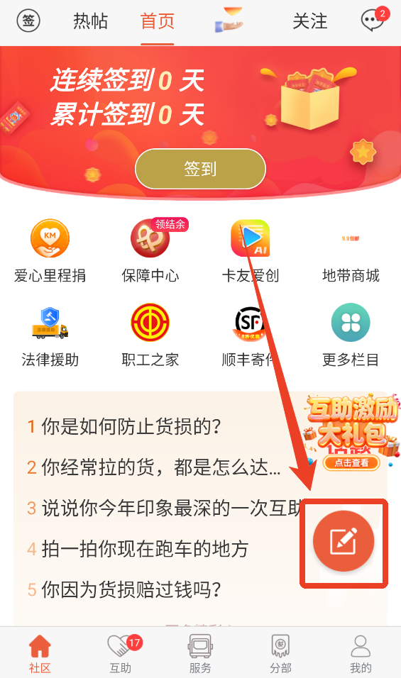 货车司机专属的在线互助社区,在线问答,线下救援;