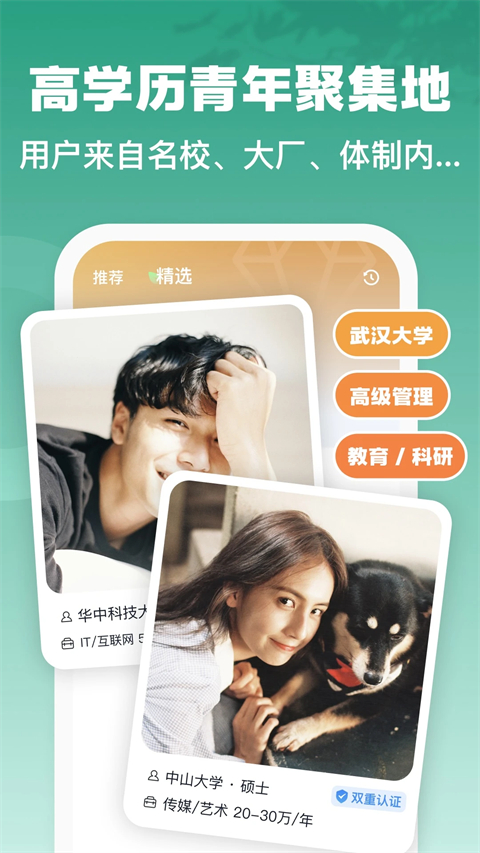 青藤之恋app是一款高学历优质青年的交友社区应用。其主要目的就是为了解决高学历优质青年的社交问题。平台精致小巧,绿色安全,海量高学历,高颜值用户真实靠谱,每一位都确保皆通过实名和学历认证,人工审核相册和资料等多方位认证审核,让大家在放心交友的情况下也能更了解Ta!与此同时,青藤之恋app玩法丰富,高效匹配,每天都可智能化为你推荐符合自己的嘉宾,遇见心仪的支持一键关注”喜欢”一下或是开启“超级消息”互动聊天,帮助帮你快速脱单,告别单身困扰哦!
