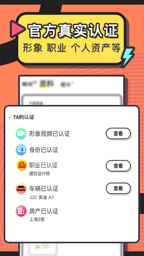 4、唯一对用户资料真实度做认证的交友软件,拒绝照骗!