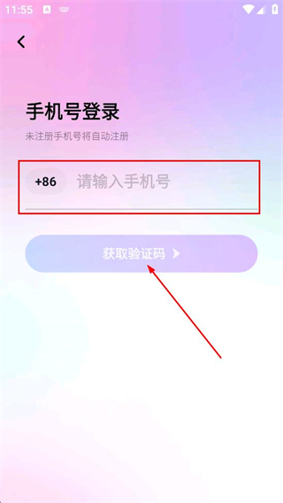 3、在手机号登录页面,填写请输入手机号,即可在获取短信验证码。